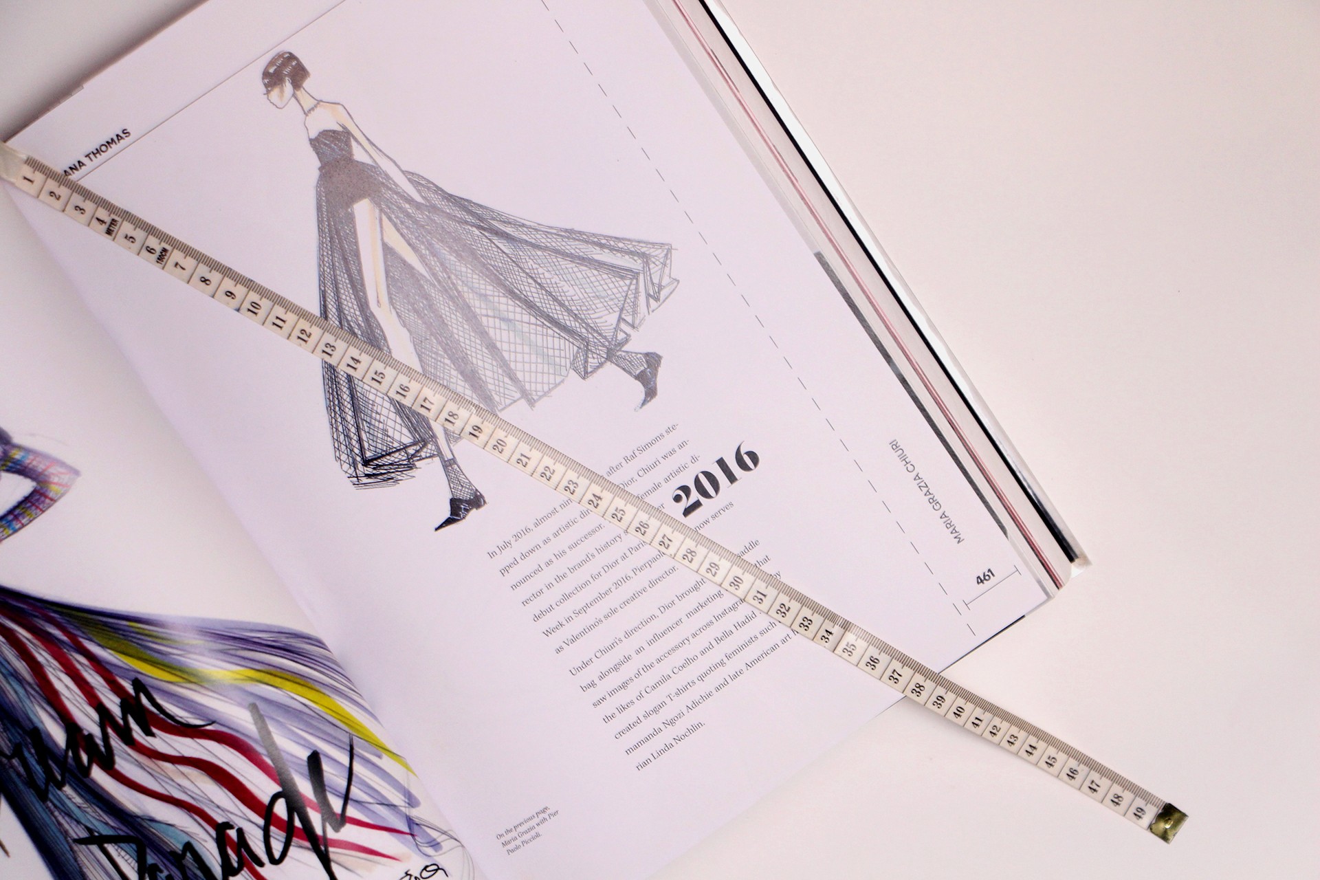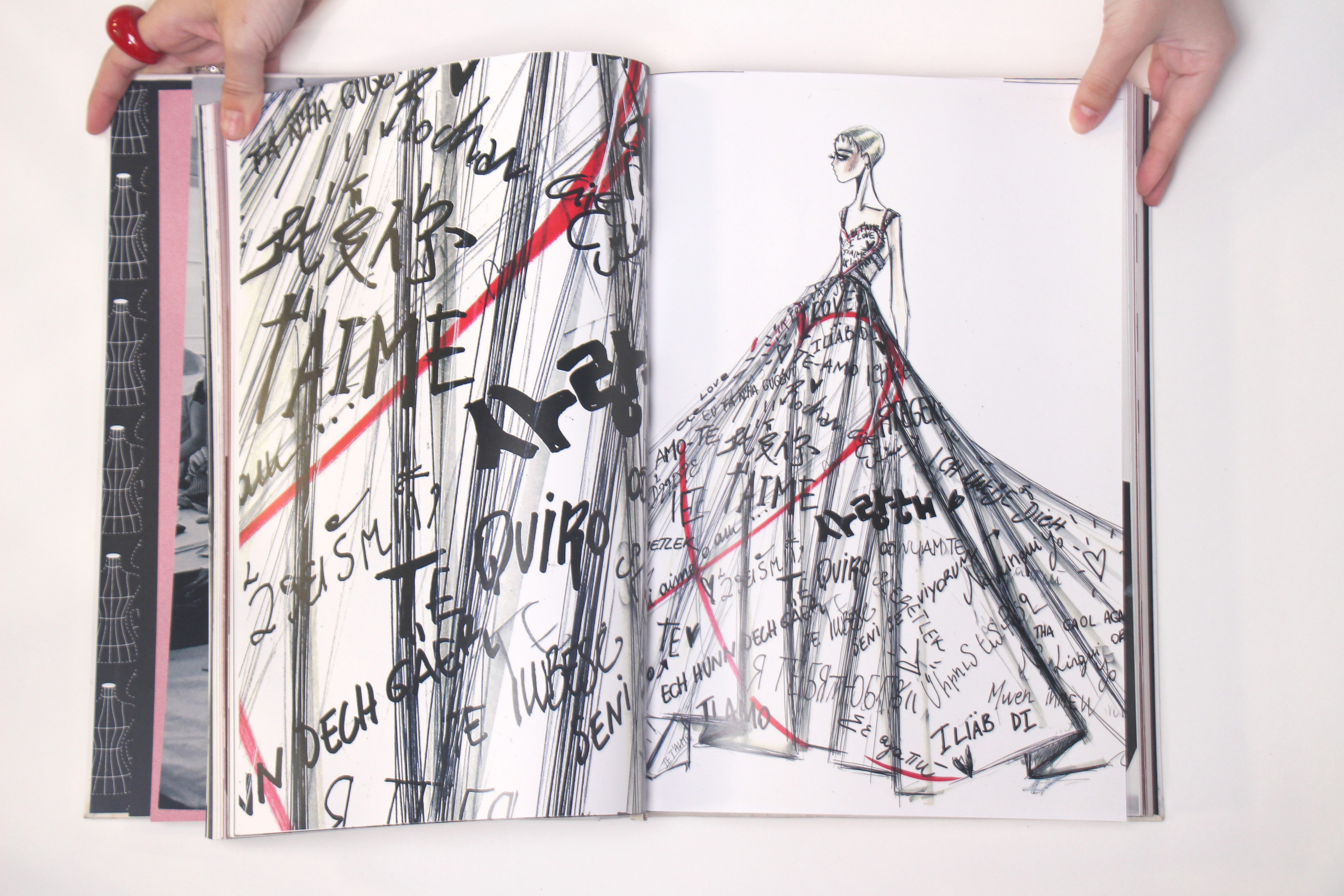 O projeto gráfico do livro de arte busca a interseção entre o refinamento de um livro de arte, o inalcançável da moda e as marcas do processo. A construção de suas páginas evoca elementos de marcação de cotas, recortes e rabiscos, com trechos escritos manualmente. Sua mancha de texto e formato reforçam a verticalidade dos desenhos dos croquis, e sua composição tipográfica resgata o imaginário de livros de arte e luxo. Seu marcador, uma fita métrica, foi solução gráfica adotada para captar o universo da moda.